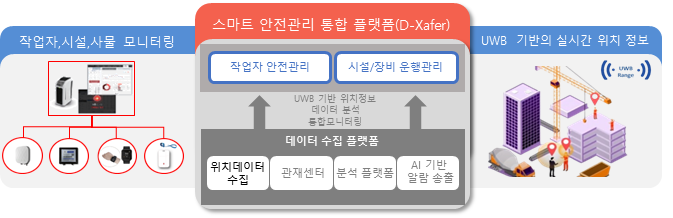 스마트 안전관리 통합 플랫폼은 UWB 기반 실시간 위치 추적을 통한 저비용-고도화 스마트 안전기술 제공합니다.